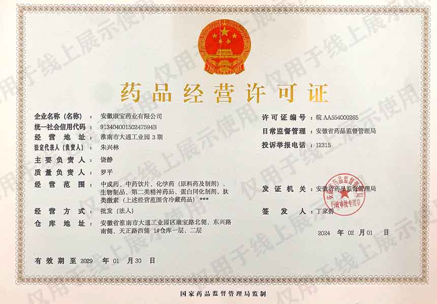 公司地址:安徽省淮南市大通區大通工業園三期淮南康寶藥業有限公司
